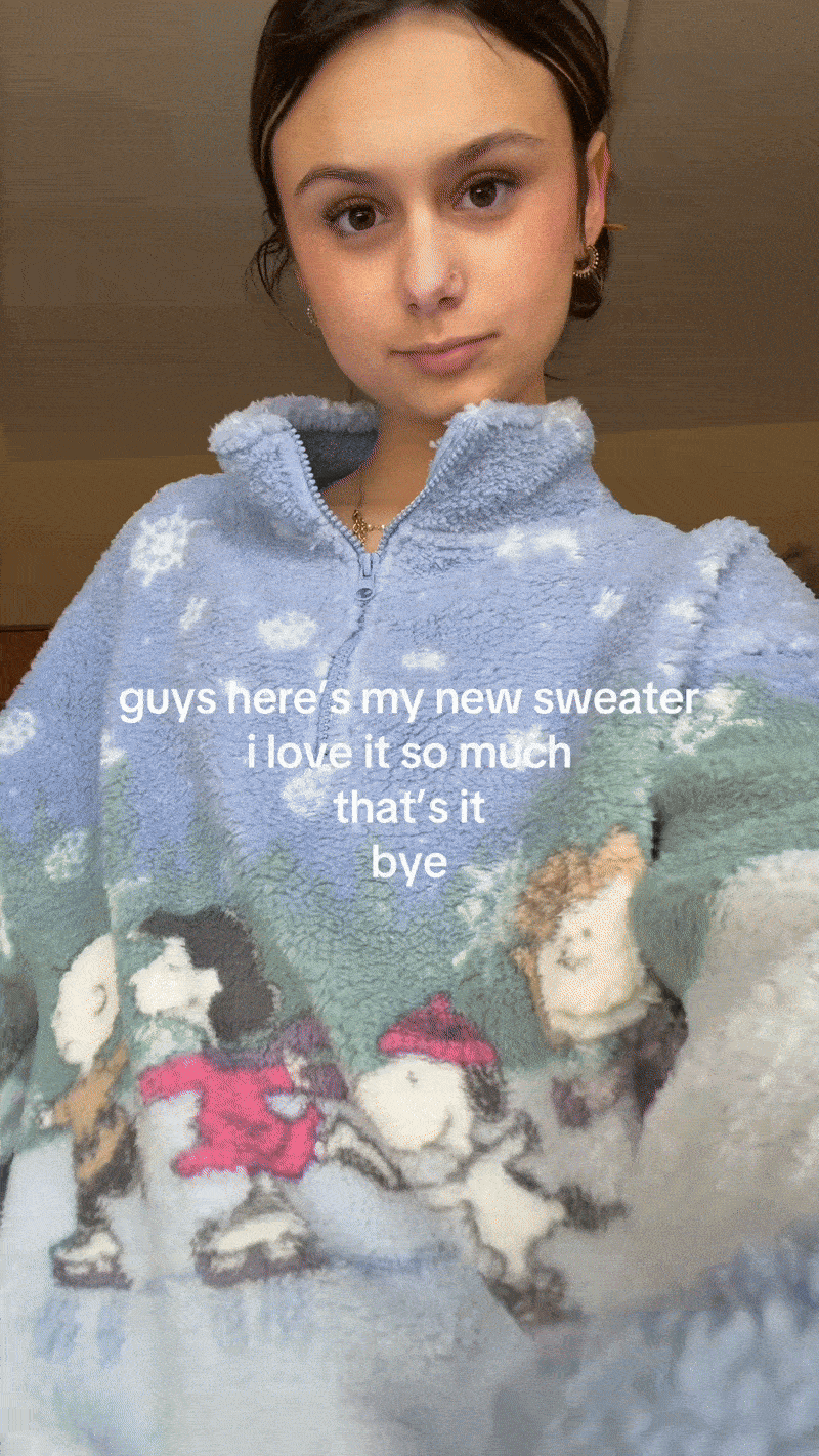 Stay cozy and stylish with this long sleeve pullover that perfectly blends comfort and a bit of fun. With a playful graphic that'll spark joy and a handy 1/4 zip, this piece is just waiting to be your go-to for chilly outings or lazy days at home.